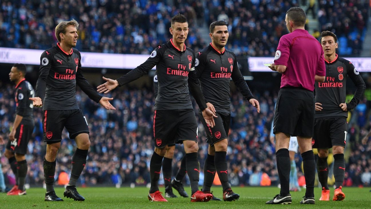 Sundulan sterling tepat di depan gawang arsenal. The ball is in the net, but arsenal fans aren't celebrating. The citizens started the match impressively and they would have even scored the opener in the second minutes. Flamini 6 out of 10. Bravo, kolarov, zabaleta (sagna), otamendi, clichy, fernando, sterling, de bruyne (iheanacho), sane (navas), silva, toure.